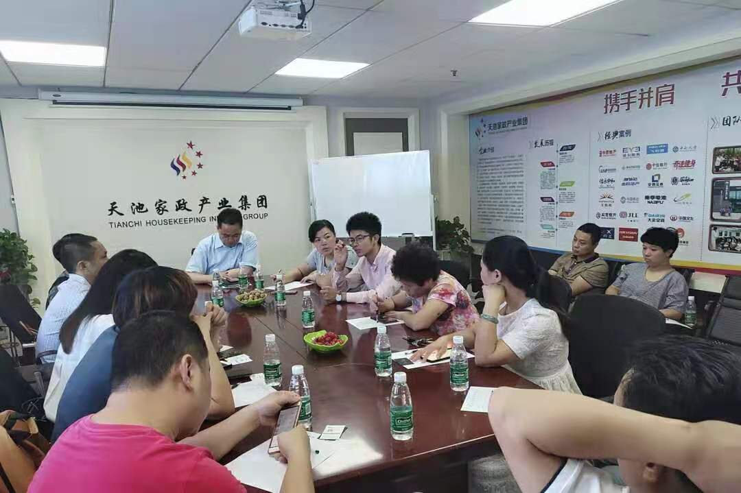 9月25日,天池家政產(chǎn)業(yè)集團(tuán)最新一期的結(jié)業(yè)典禮在總部培訓(xùn)室展開(kāi),又一批經(jīng)過(guò)天池集團(tuán)專(zhuān)業(yè)訓(xùn)練,有技能、有素養(yǎng)的學(xué)員走上了育嬰師的隊(duì)伍,開(kāi)始準(zhǔn)備為千千萬(wàn)萬(wàn)孕嬰家庭帶去精心的呵護(hù)和溫暖的陪伴。 在此次育嬰師結(jié)業(yè)典禮上,天池集團(tuán)與學(xué)員們向偉大的祖國(guó)母親70歲生日送上了美滿(mǎn)的祝福。七十載風(fēng)雨同舟,七十載輝煌成就,他們見(jiàn)證了共和國(guó)的繁榮昌盛、滄桑巨變,在此舉國(guó)歡慶之際,我們衷心祝福偉大的祖國(guó)繁榮昌盛。 2.保潔共享平臺(tái)交流會(huì)